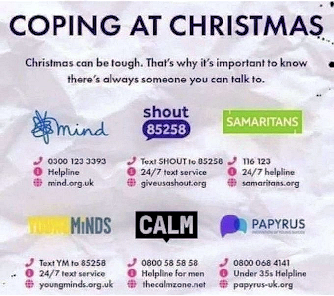 - Campaign Against Living Miserably : 0800 58 58 58 (17:00-midnight)